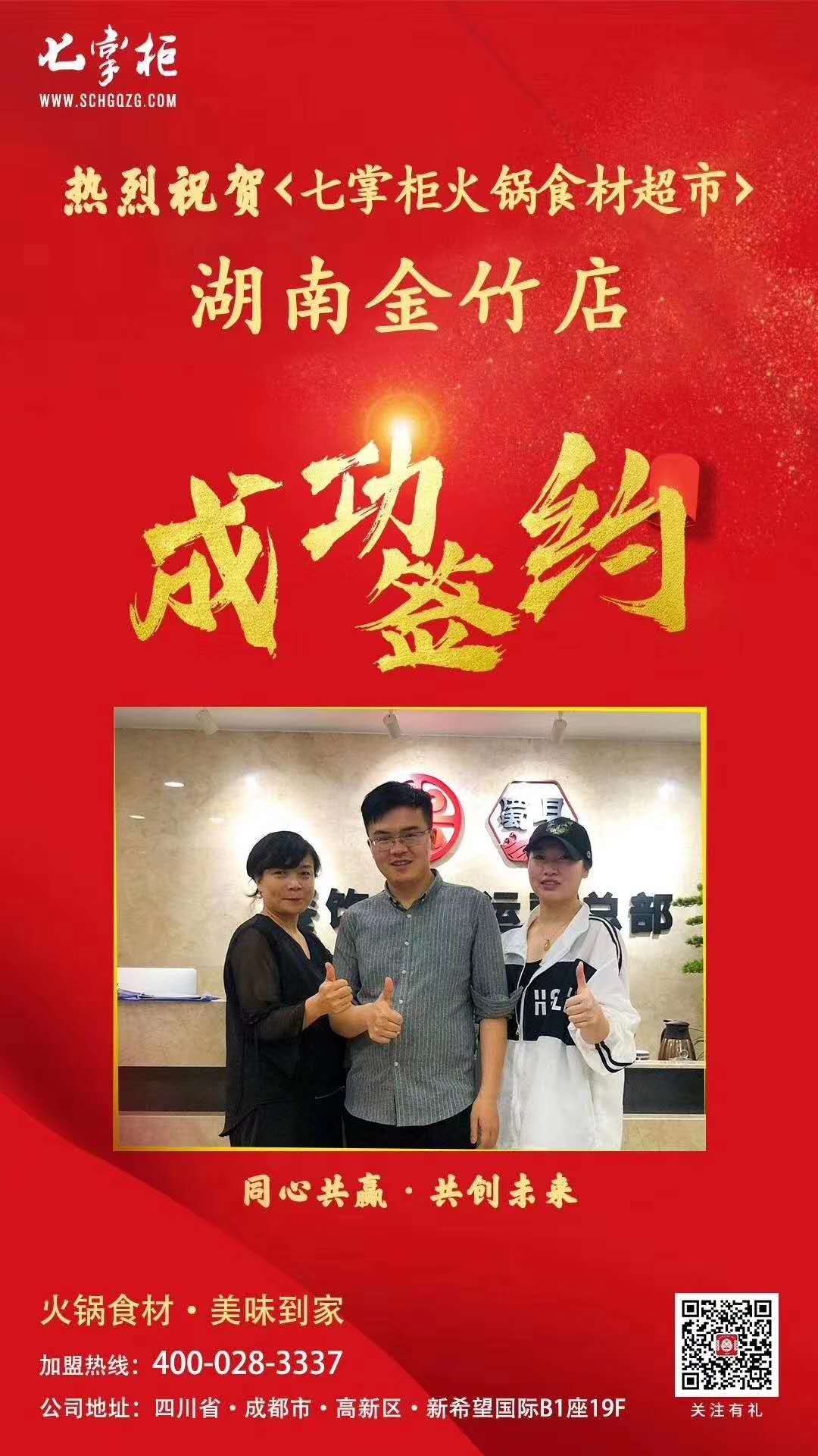 热烈祝贺七掌柜火锅食材超市湖南金竹店2020年5月6日签约成功